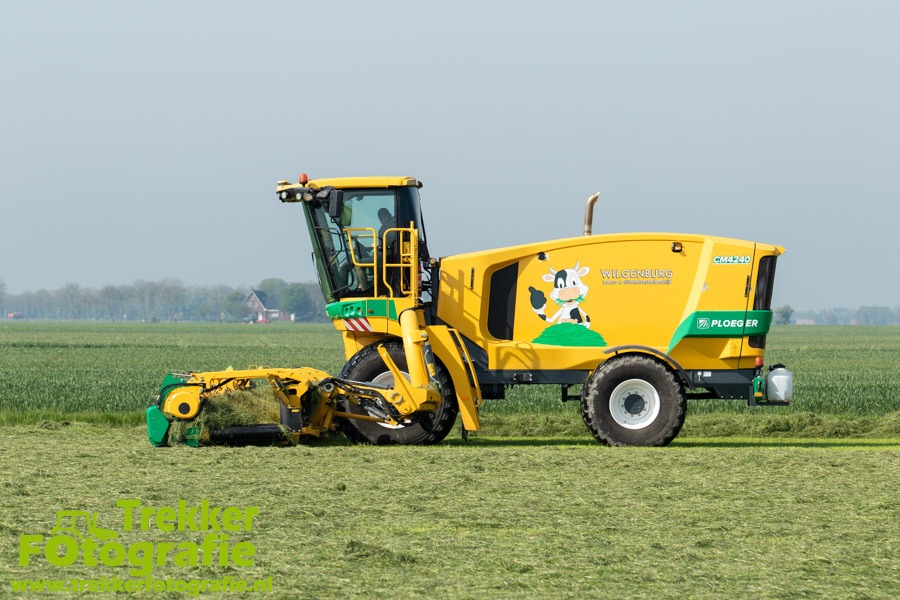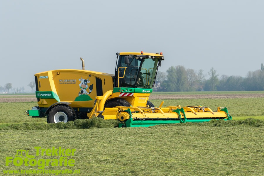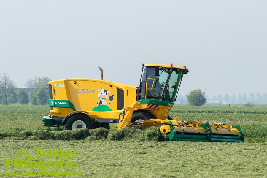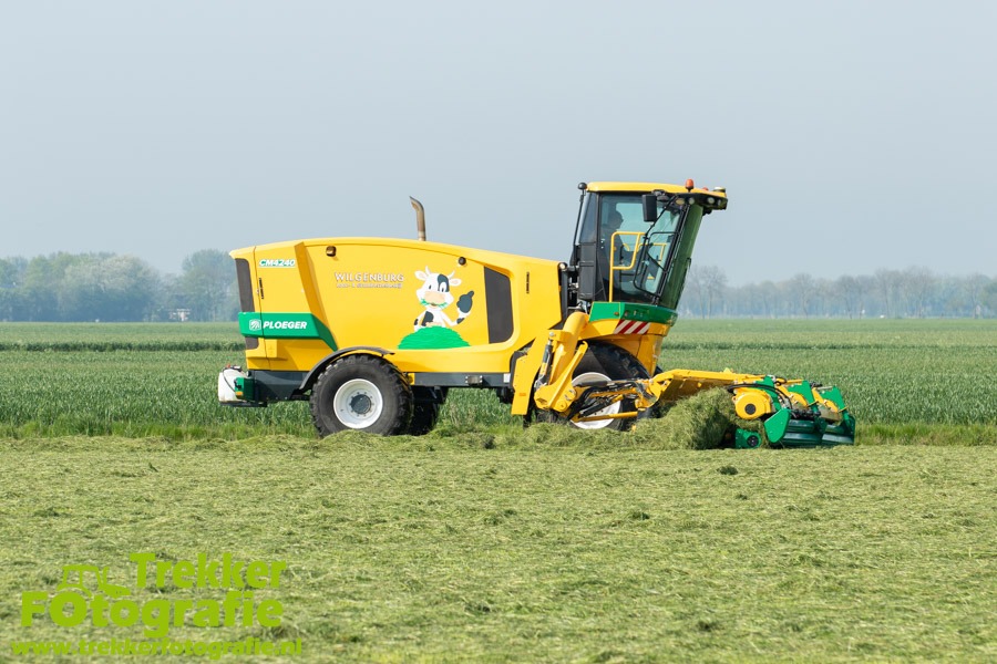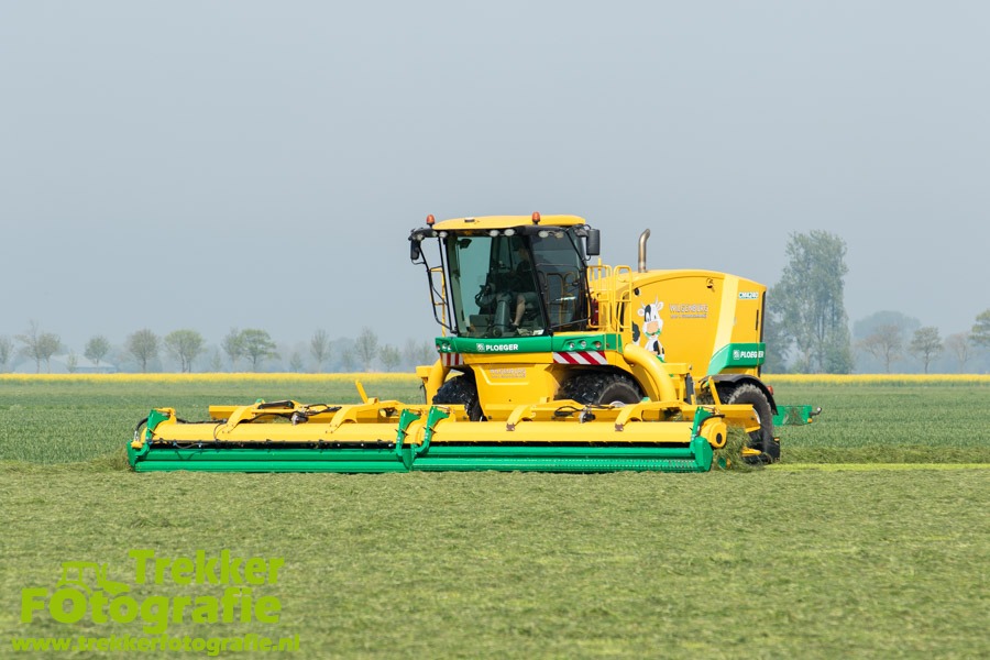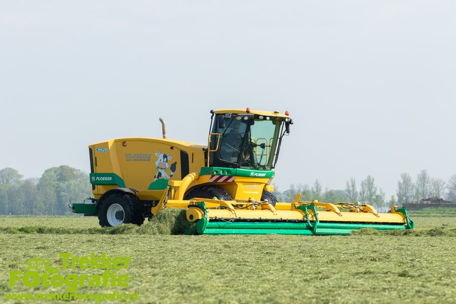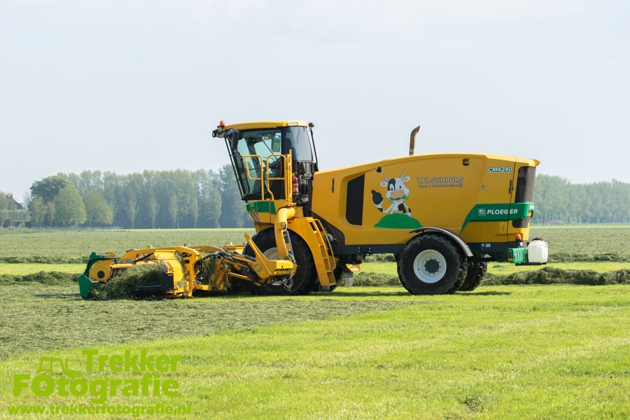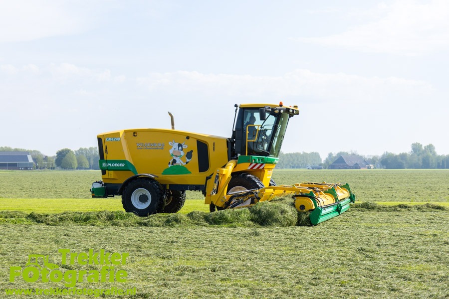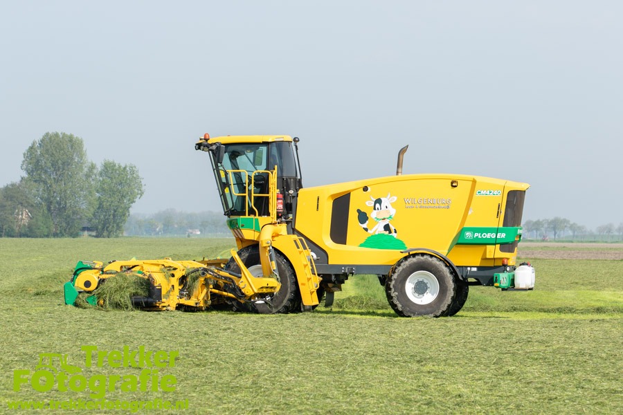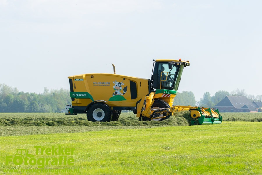 Het gras werd geharkt op een zwad van 22 meter gras bij elkaar met hun Ploeger CM4240 zelfrijdende bandhark.