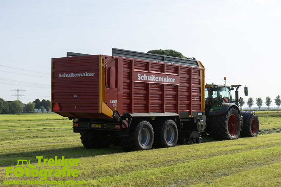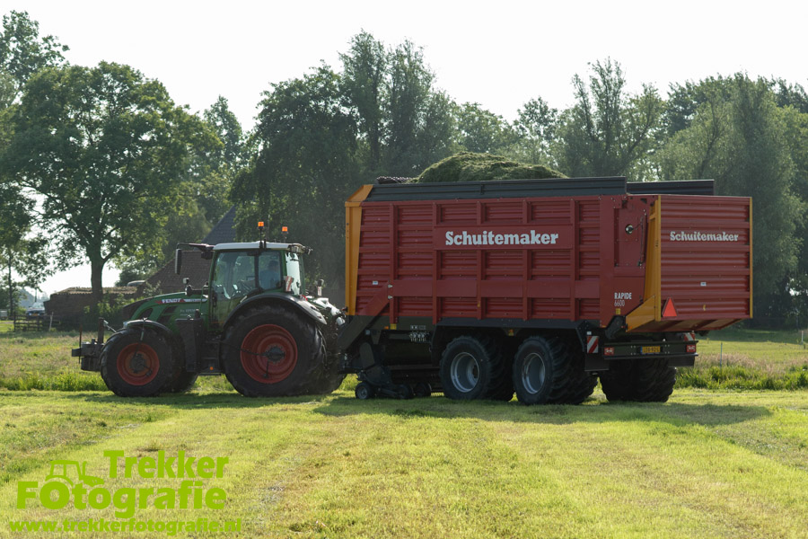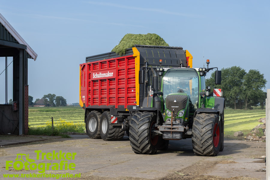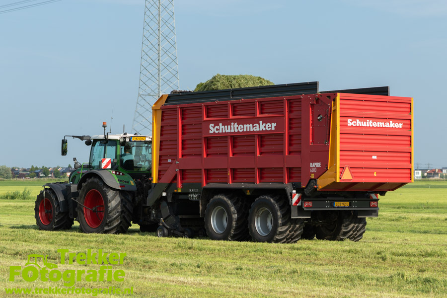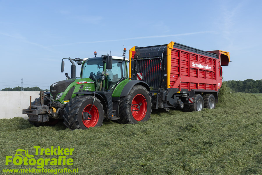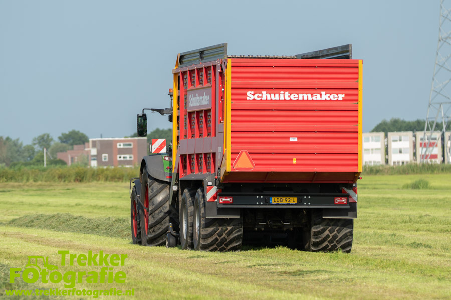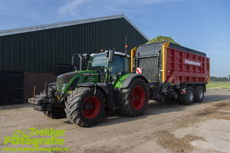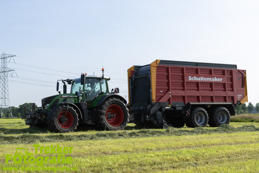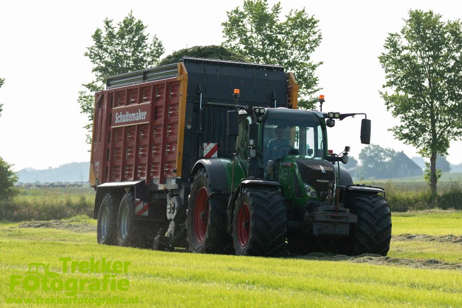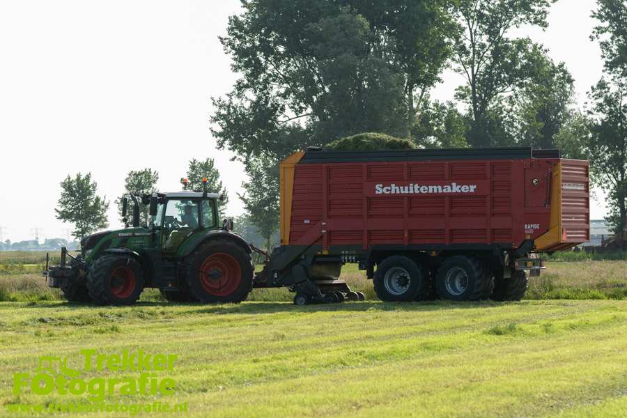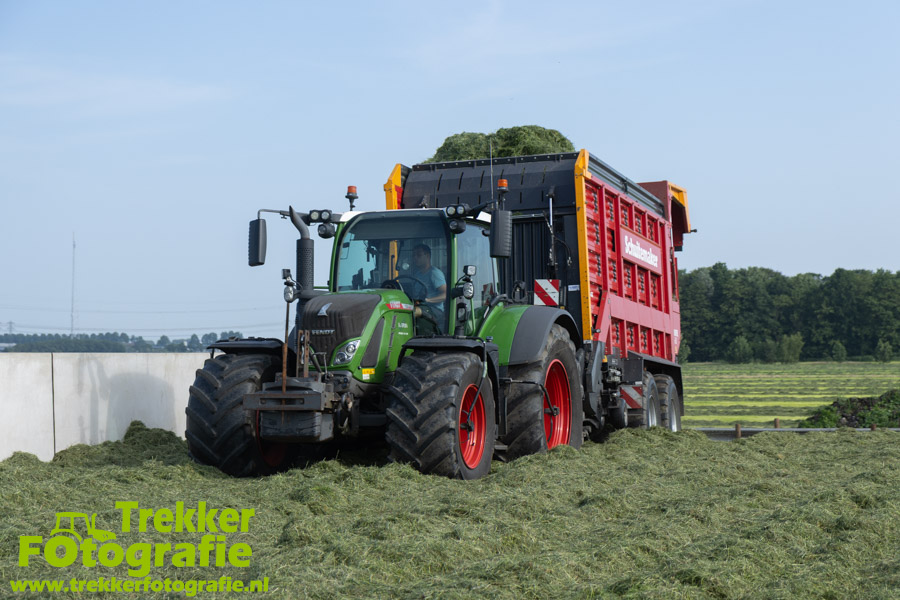 Dit jaar namen wij ook eens een kijkje bij het gras inkuilen door loonbedrijf Fa Epema. Het inkuilen van het gras werd gedaan met hun Fendt 724 Vario met een Schuitemaker Rapide 6600 opraapwagen.