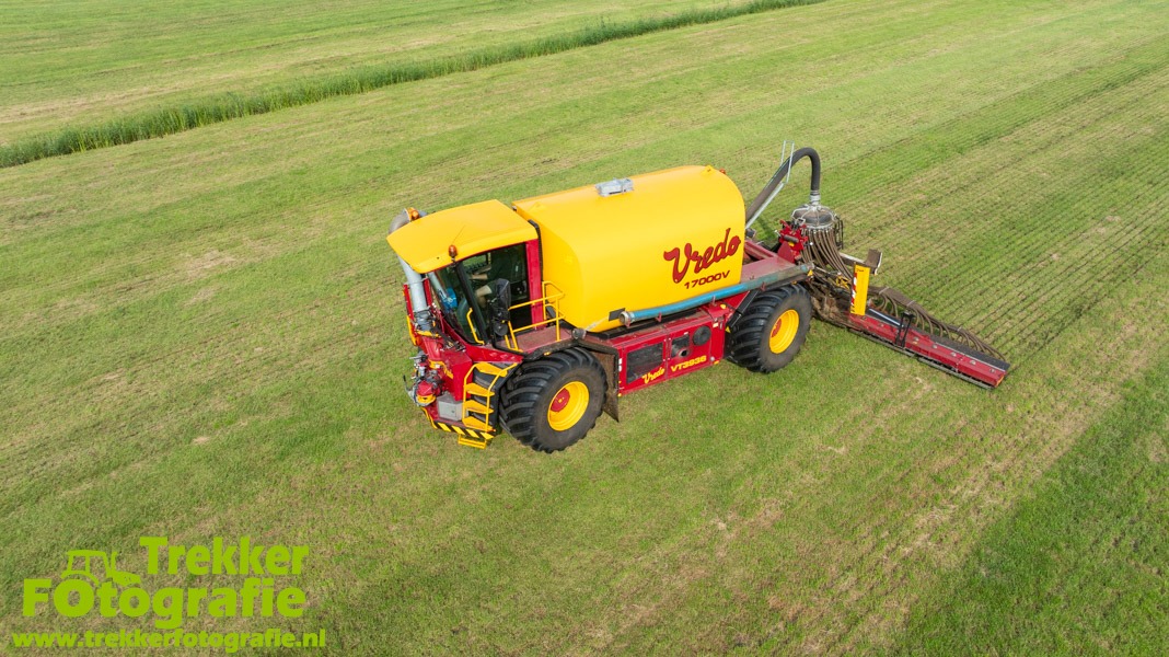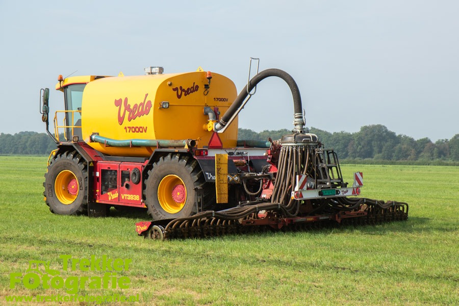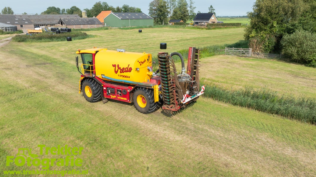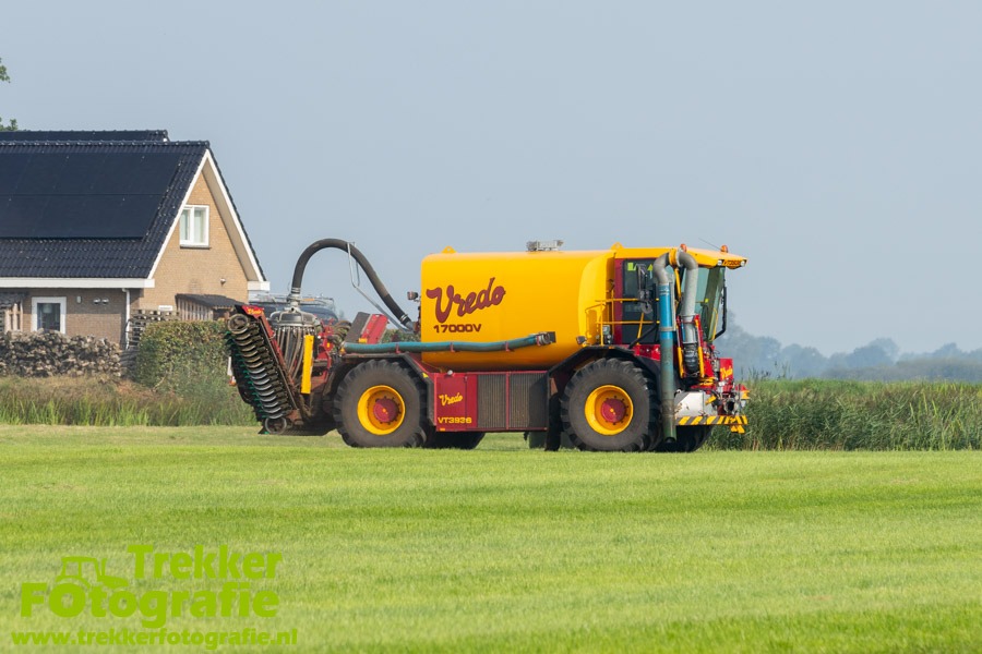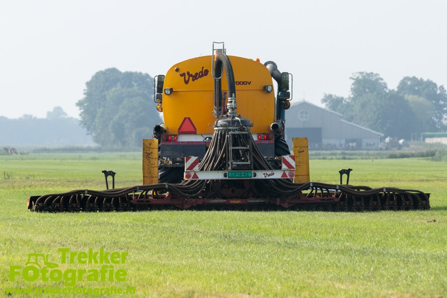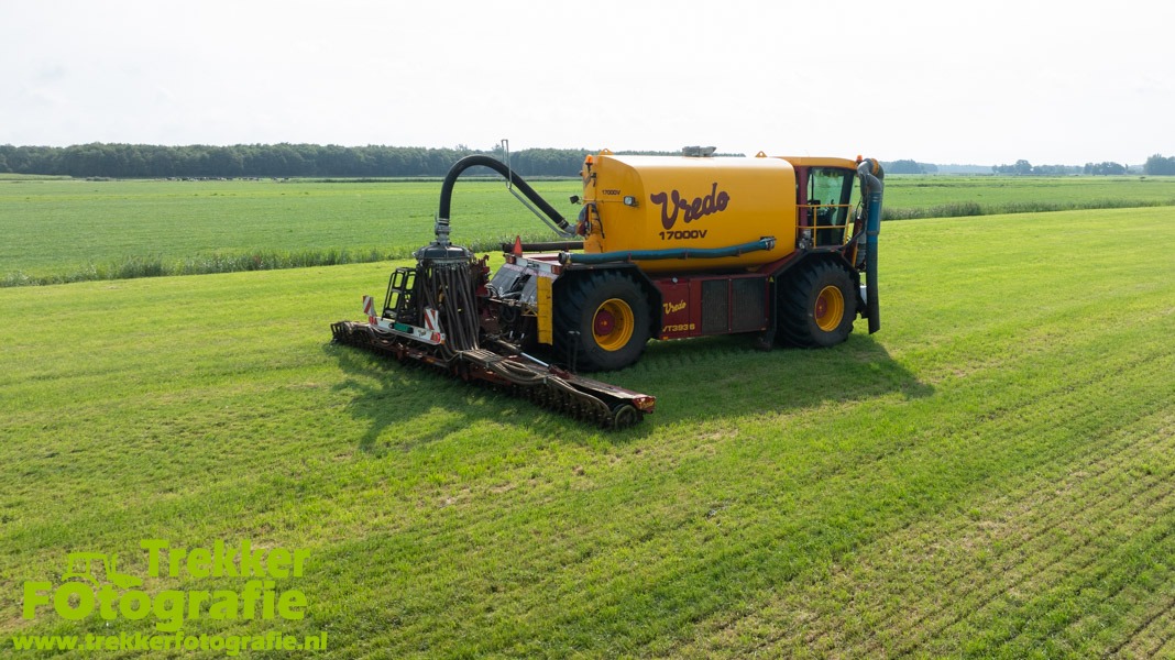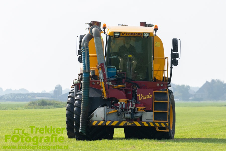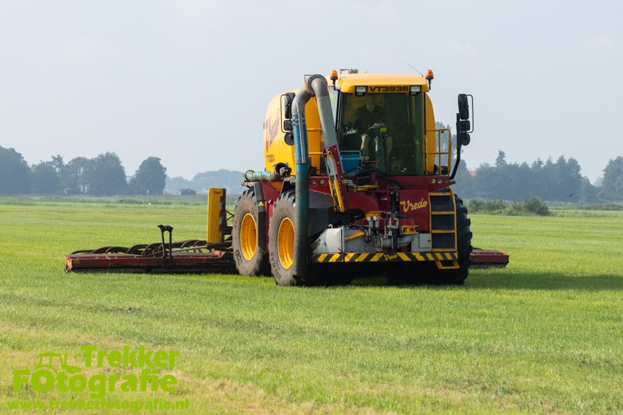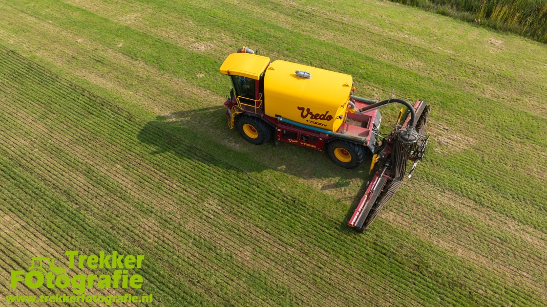 Het bemesten werd gedaan met hun, recent aangeschafte, Vredo VT3936 zelfrijder met een 9 meter brede Vredo ZB4-90048 graslandbemester.