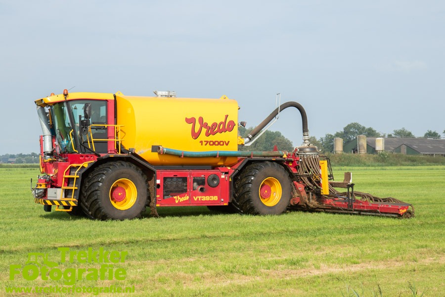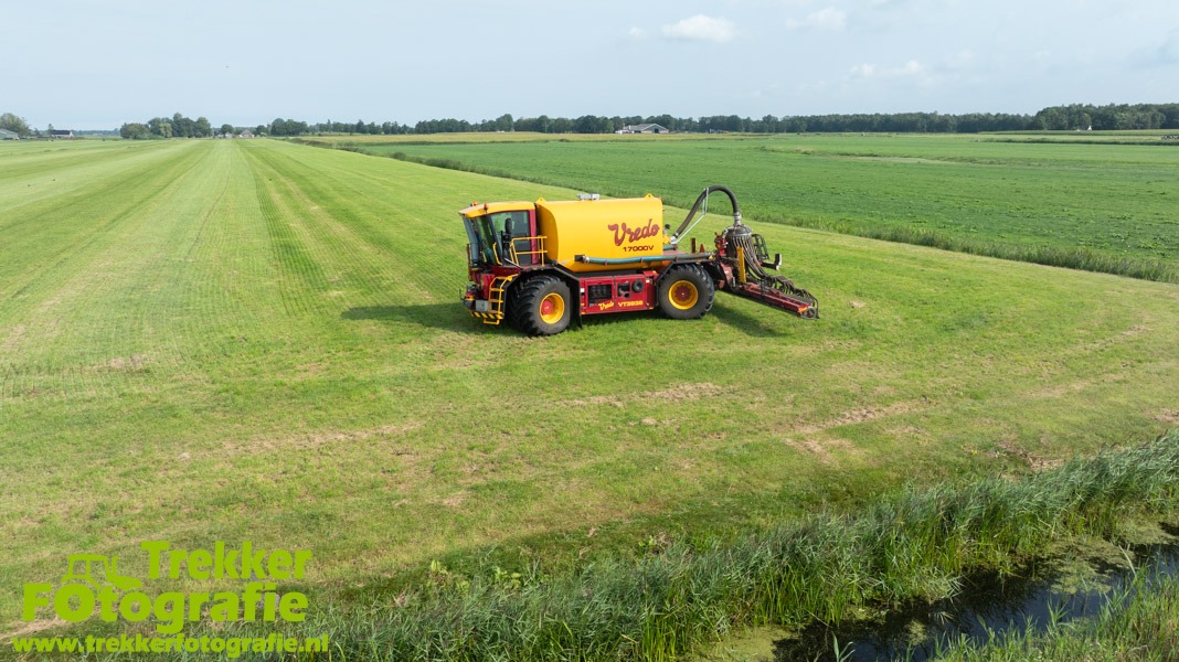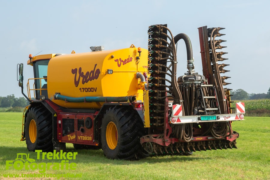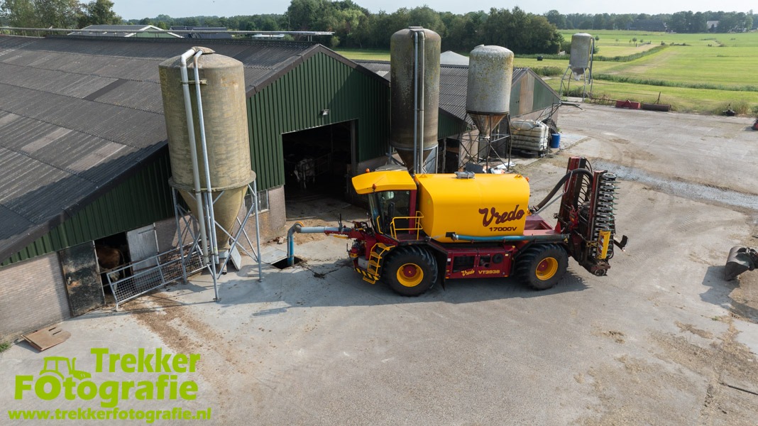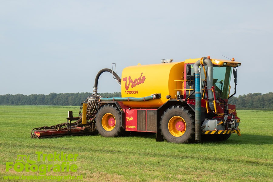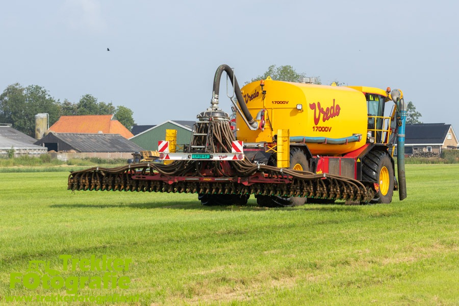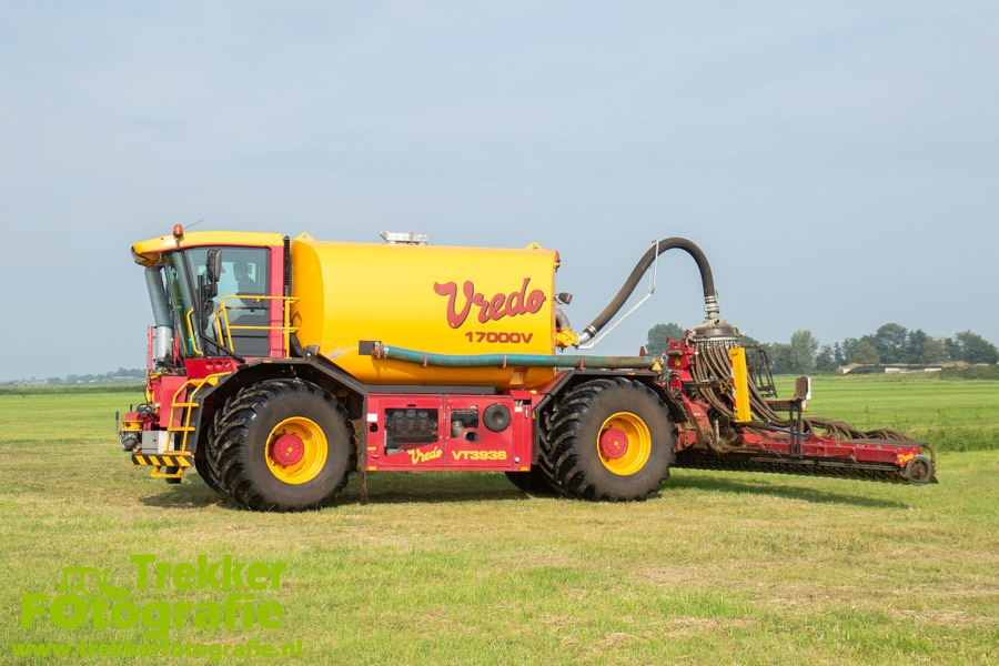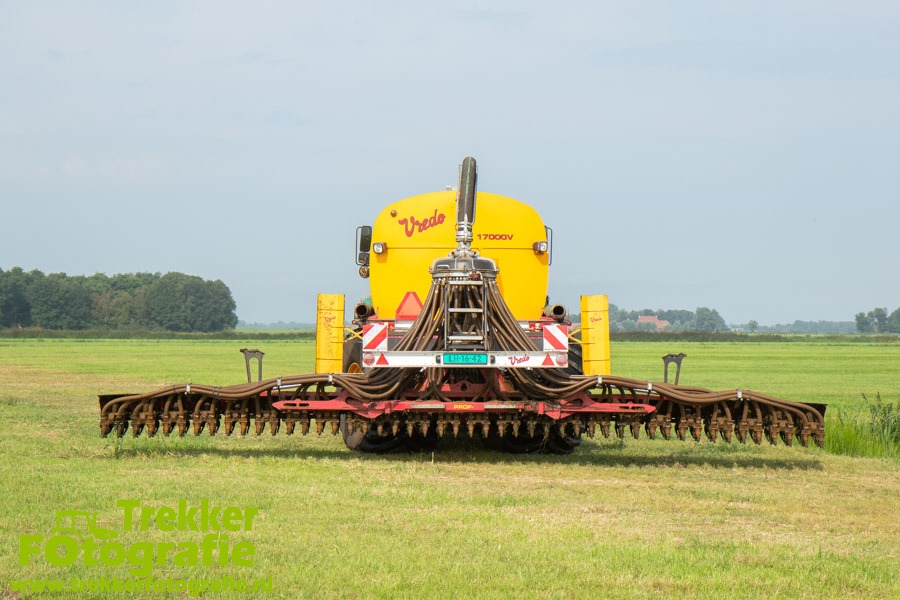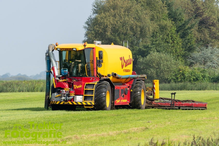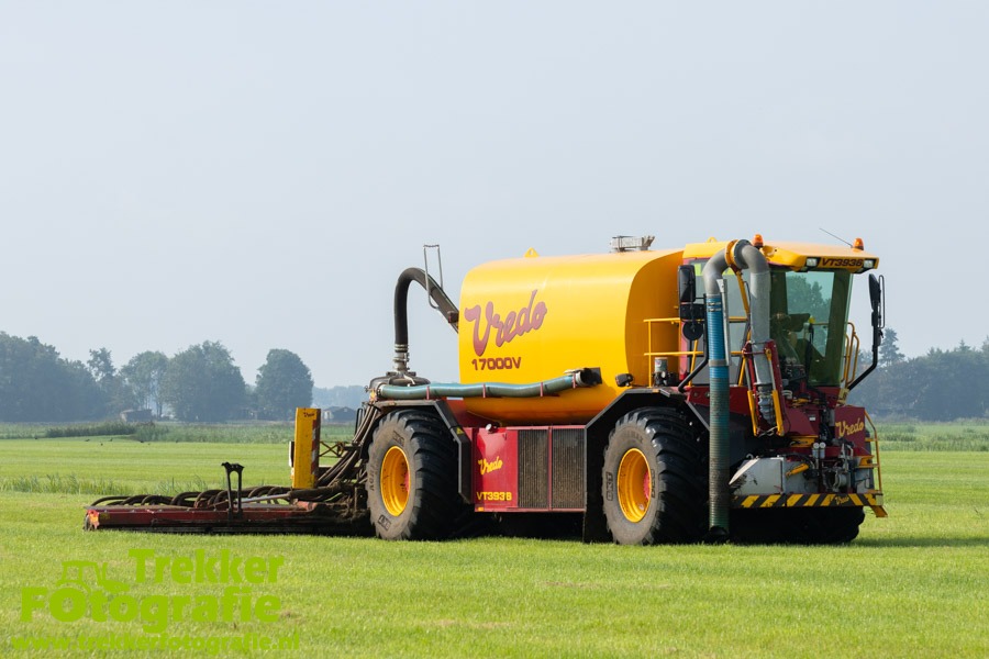 Het bemesten werd gedaan met hun, recent aangeschafte, Vredo VT3936 zelfrijder met een 9 meter brede Vredo ZB4-90048 graslandbemester.