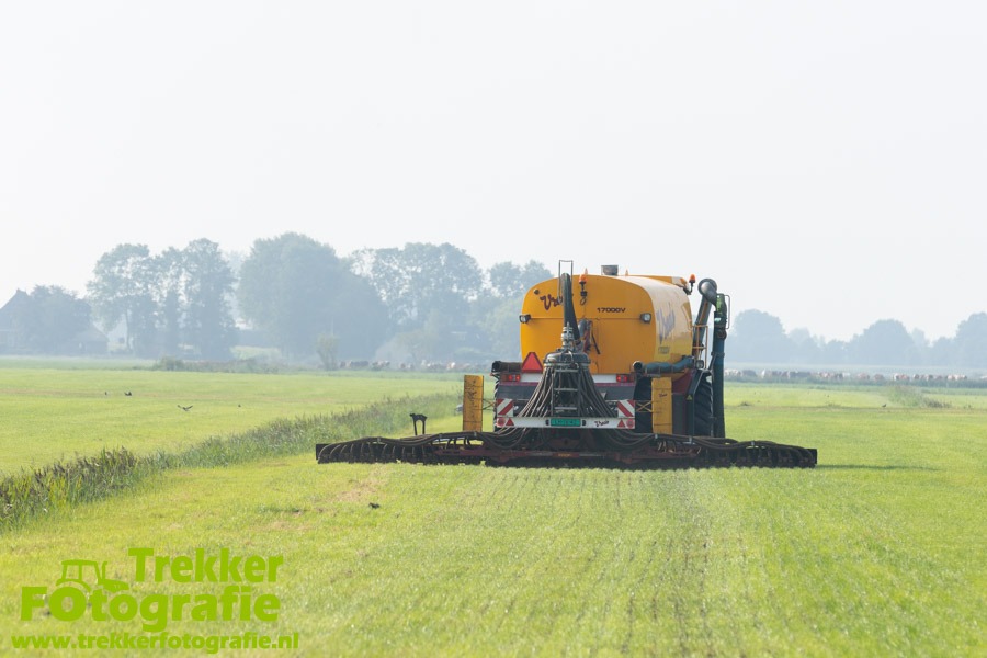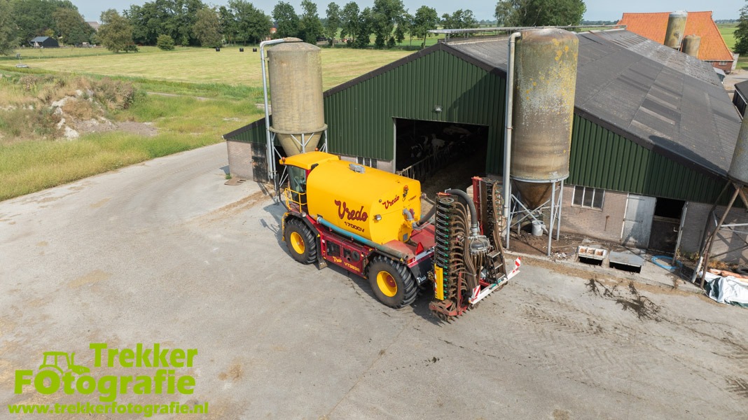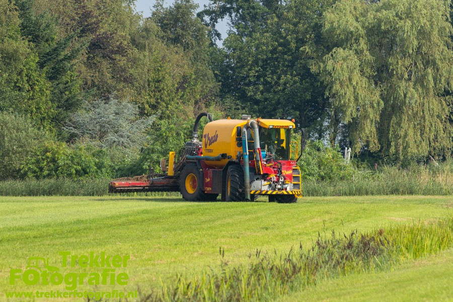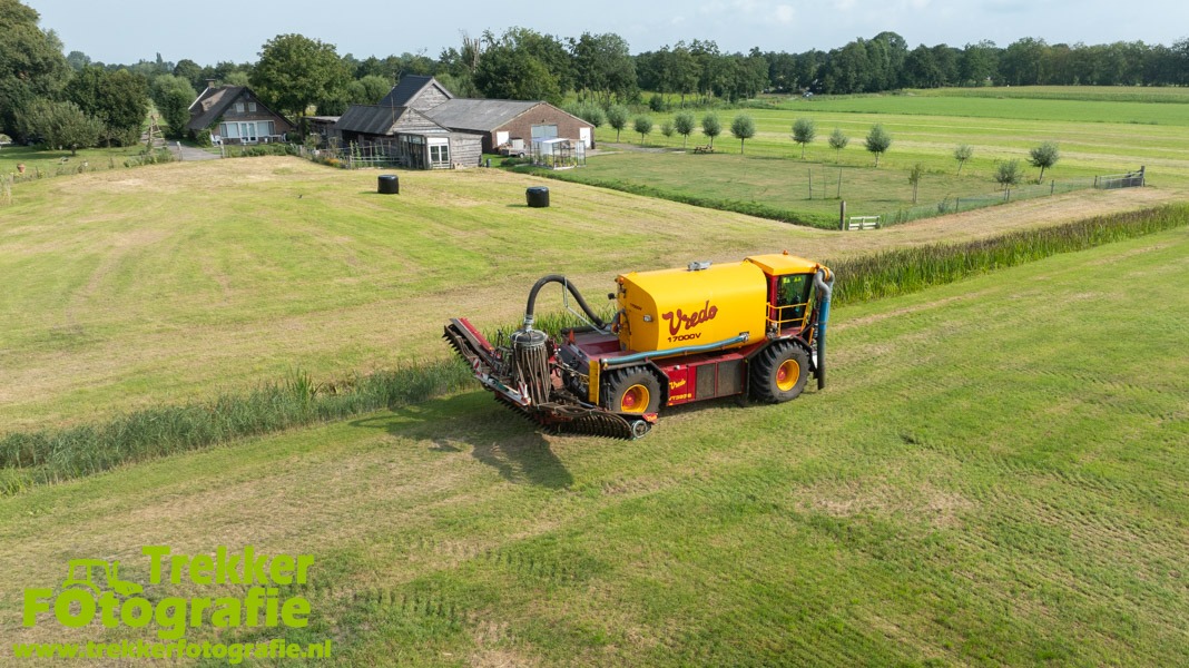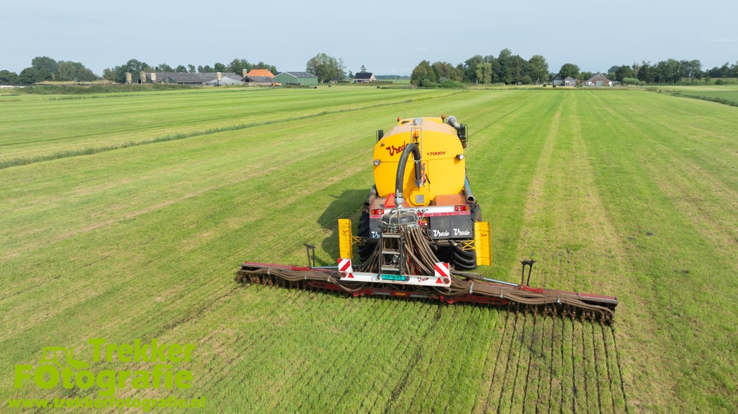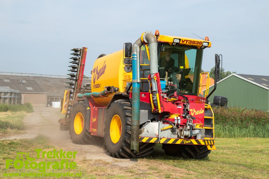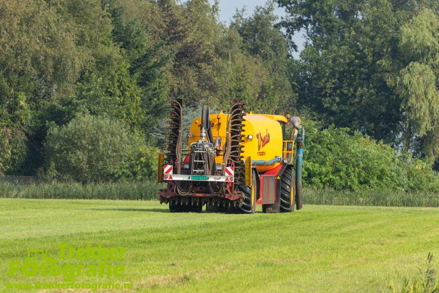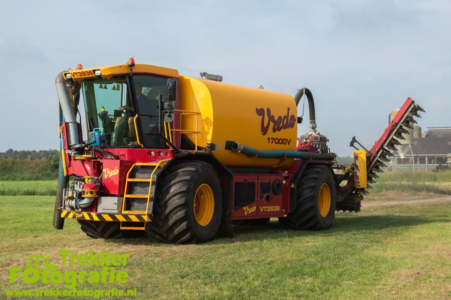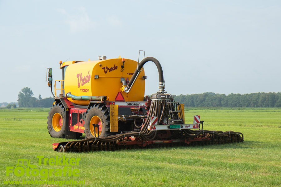 Het bemesten werd gedaan met hun, recent aangeschafte, Vredo VT3936 zelfrijder met een 9 meter brede Vredo ZB4-90048 graslandbemester.