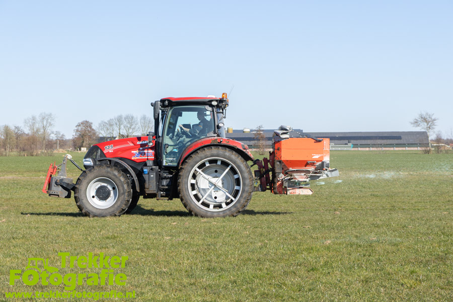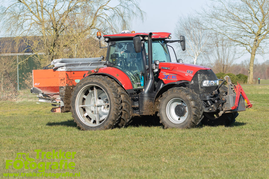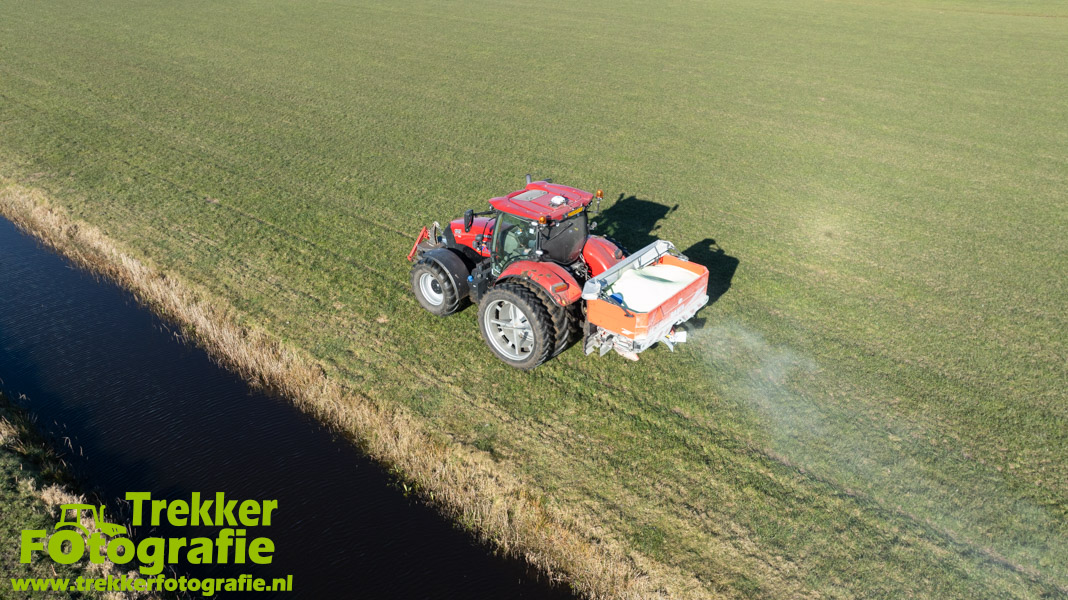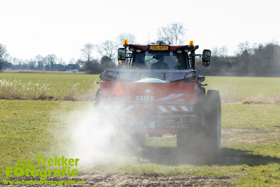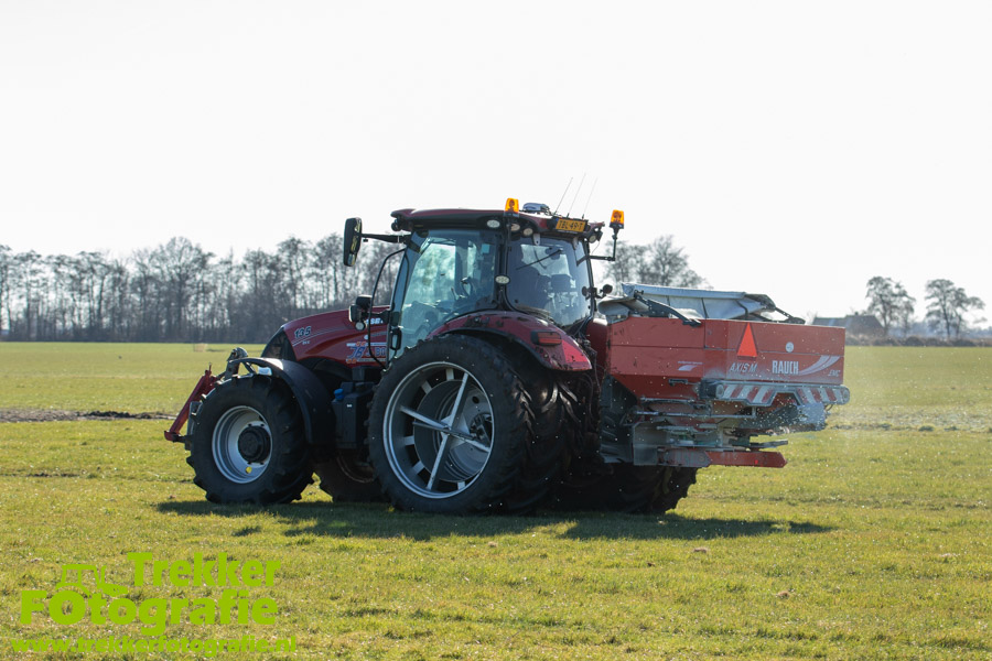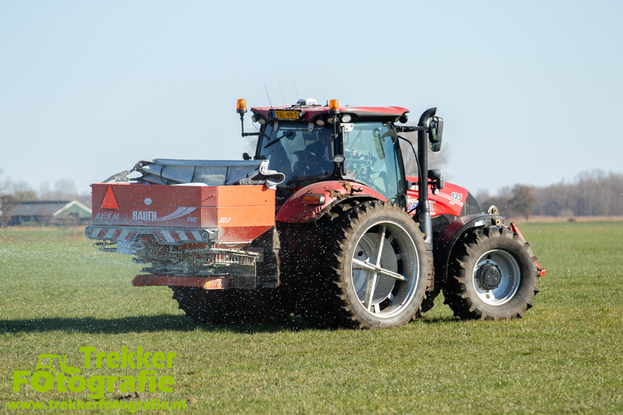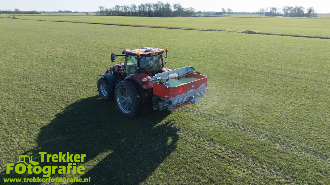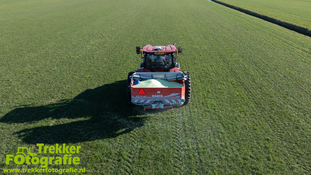 Afgelopen weken is loonbedrijf Bol ook druk bezig geweest met het kunstmest strooien op basis van taakkaarten, dit werd gedaan met hun Case IH Maxxum 135 cvx trekker met een Rauch Axis M 30.2 EMC kunstmeststrooier.