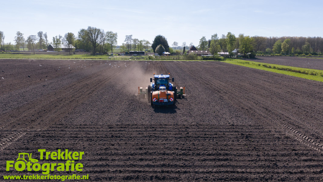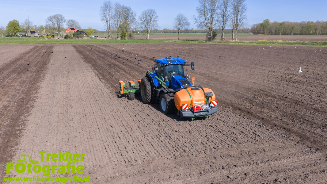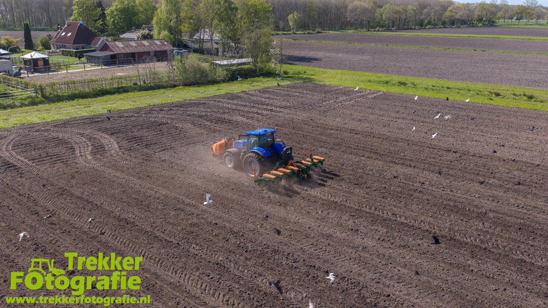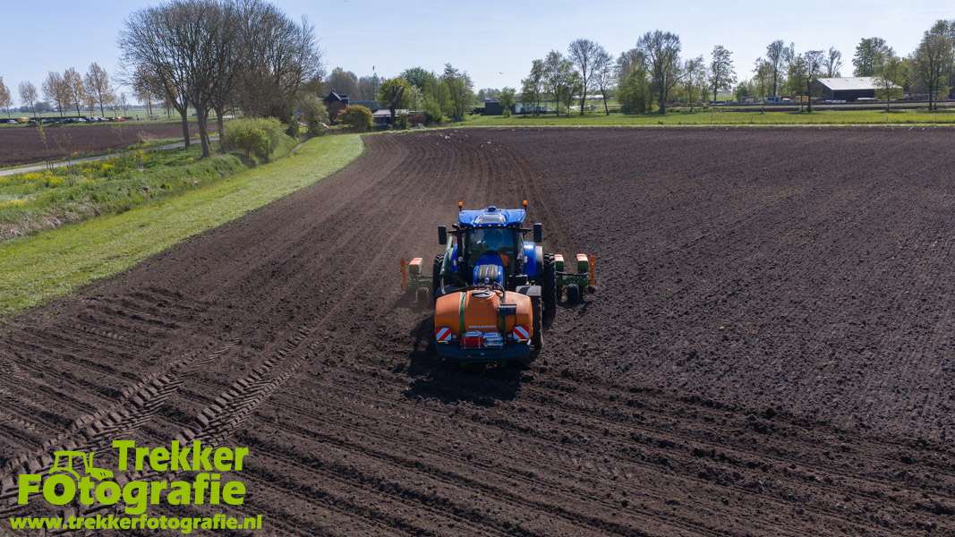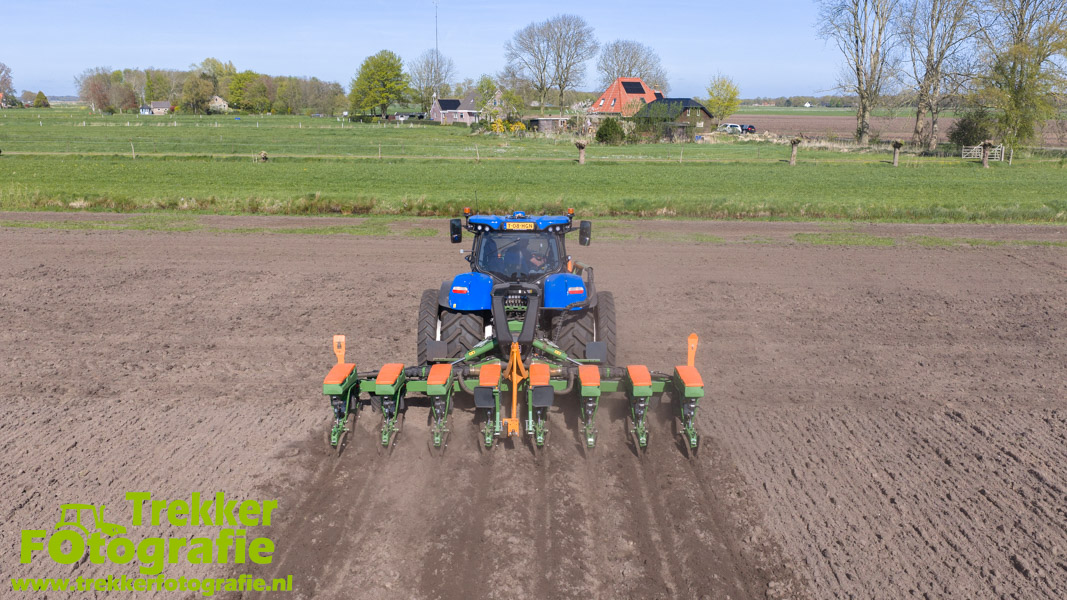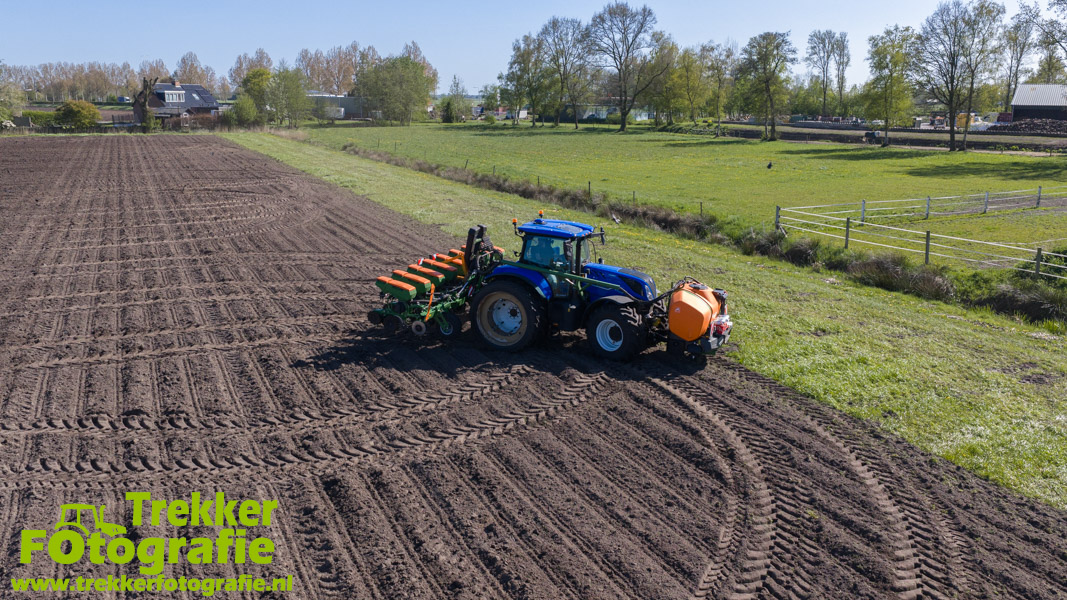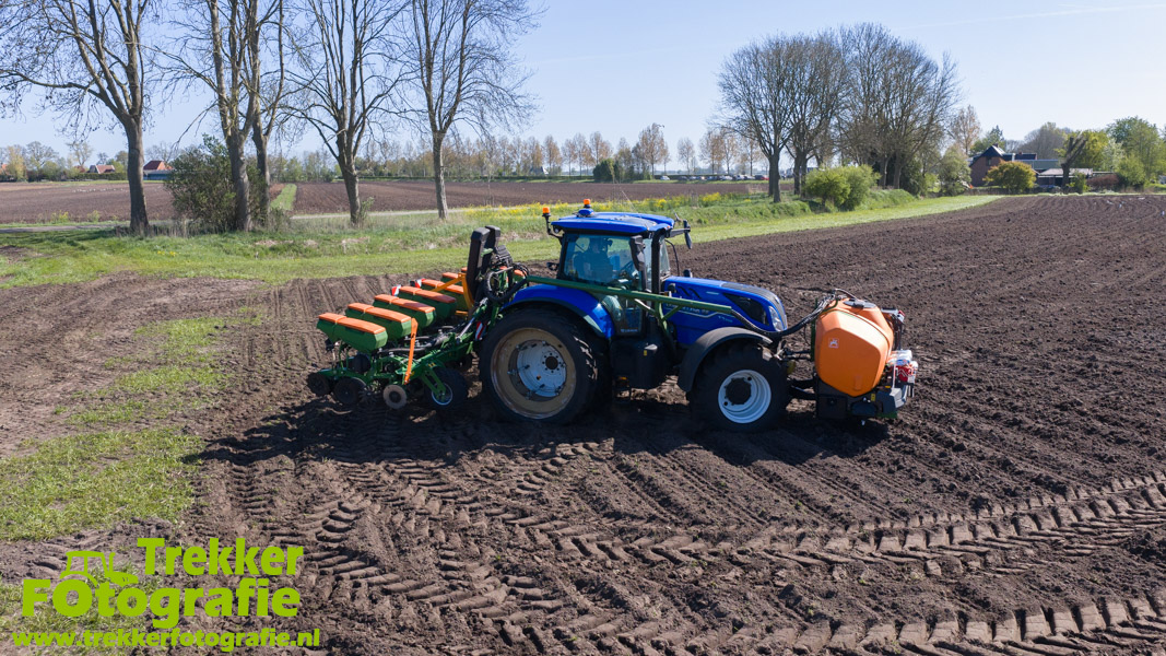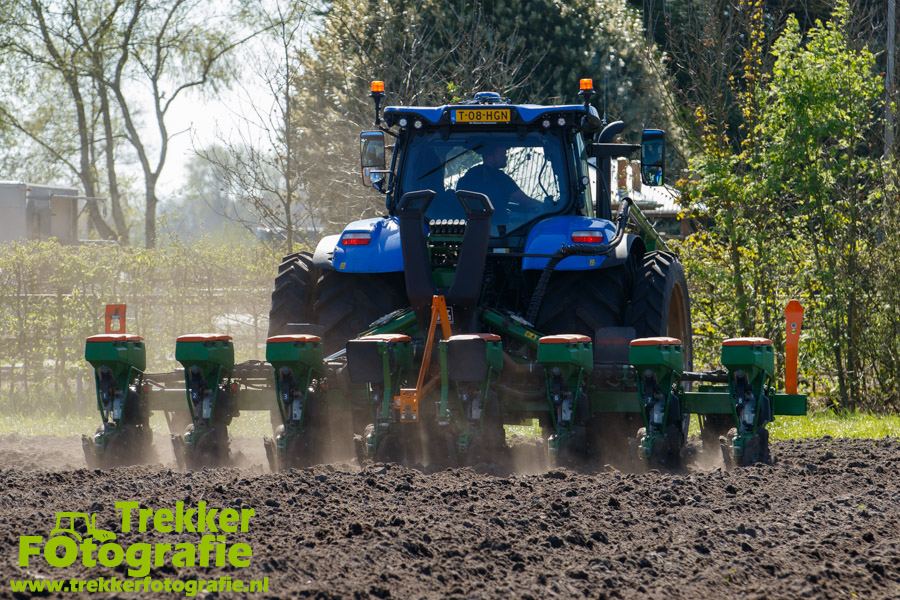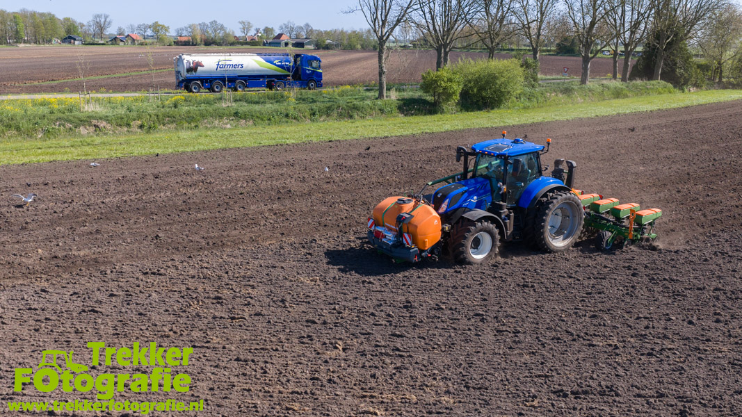 Afgelopen week namen wij een kijkje bij het maïs zaaien door loonbedrijf Lolkema, dit werd gedaan met hun nieuwe New Holland T7.225 PLM trekker met daarachter een 8-rijige Amazone Precea 6000-2FCC maïszaaier en voorop de trekker een Amazone FT-P 1502 fronttank.