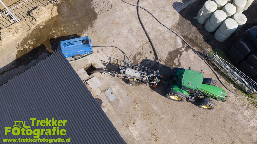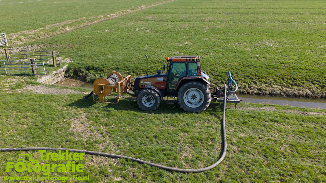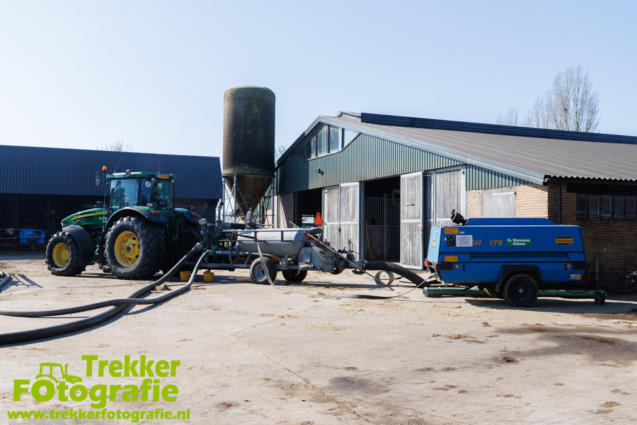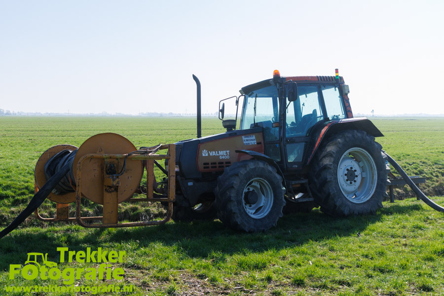 Voor de waterpomp stond hun oude vertrouwde Valmet 6400 en werd de mest door de slangen gepompt met hun John Deere 7820 met een pomptank.
