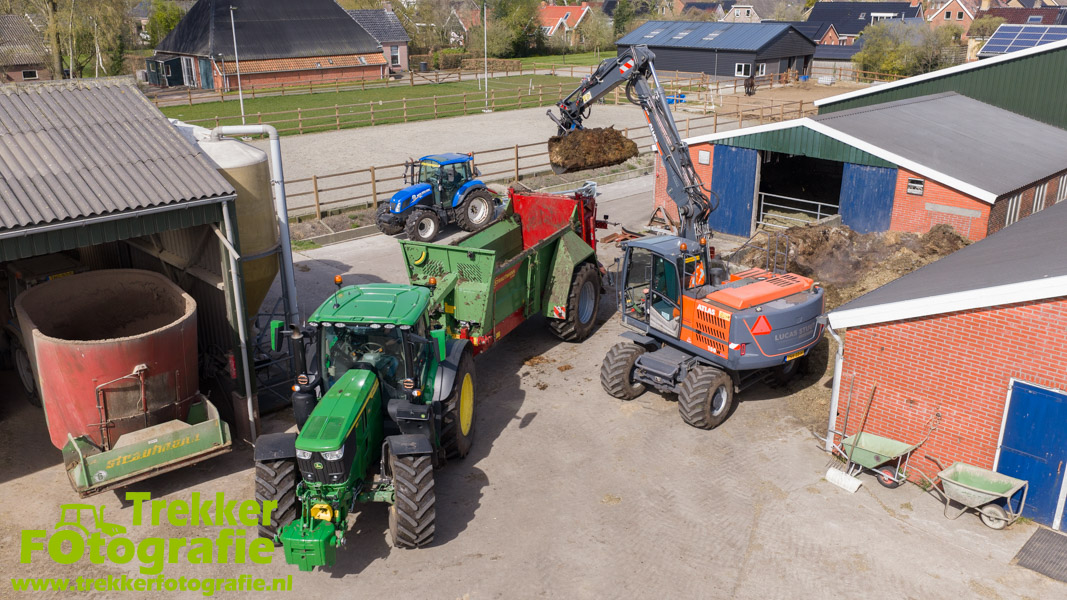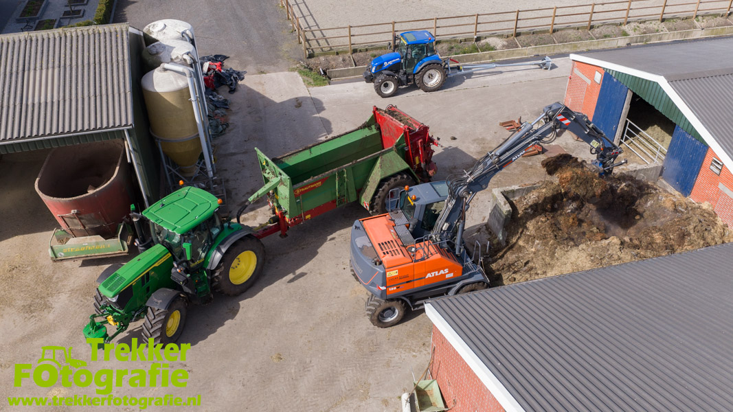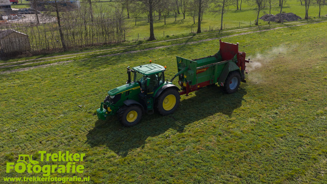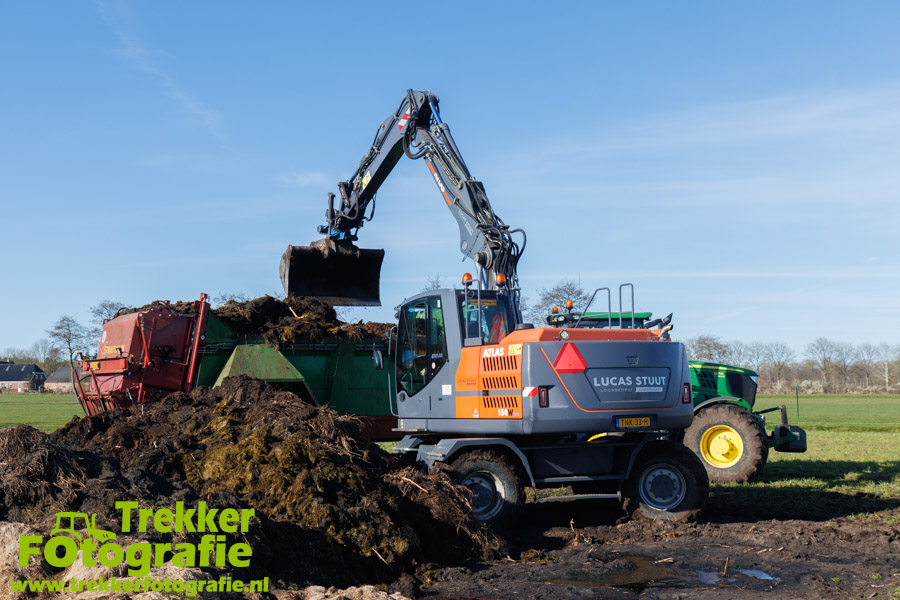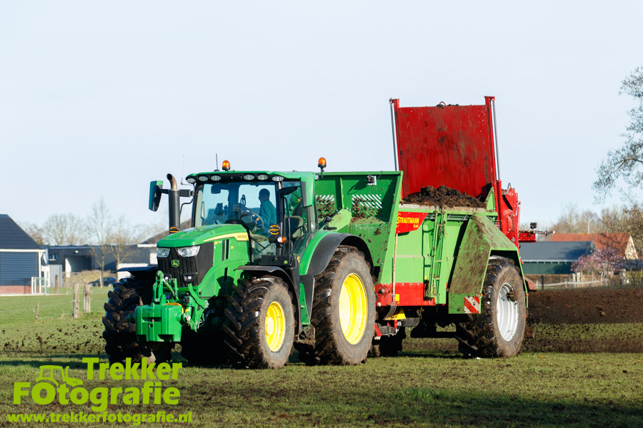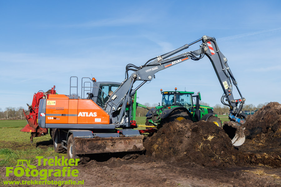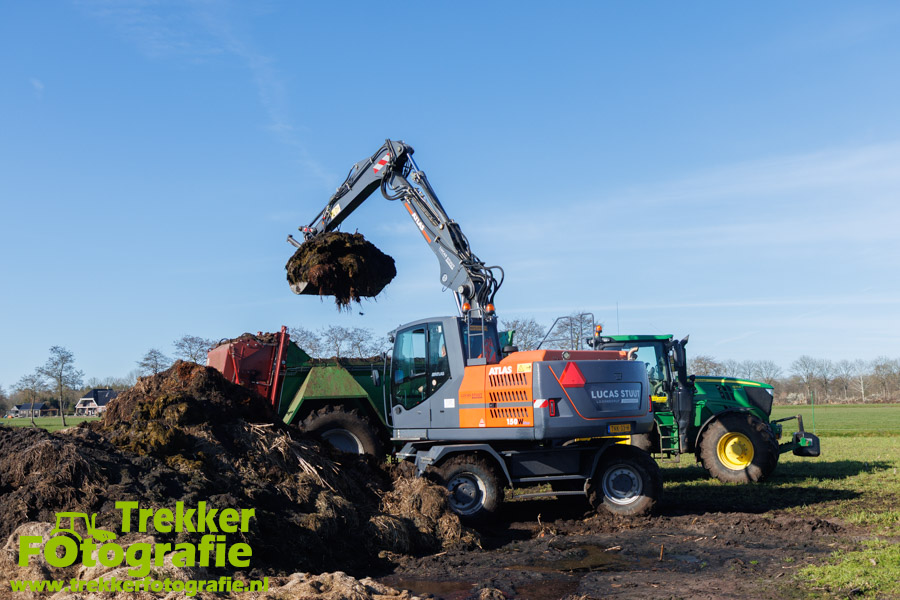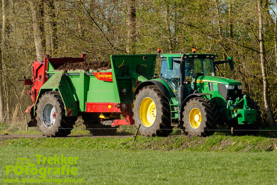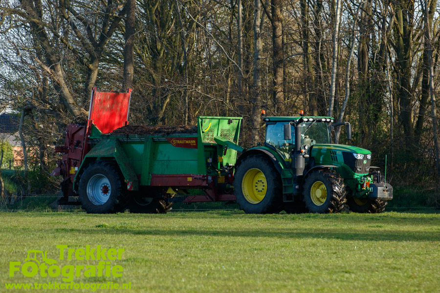 Sinds dit jaar word het vaste mest strooien bij loonbedrijf Lucas Stuut gedaan met hun twee nieuwe Strautmann TS 140 meststrooiers. Tijdens ons bezoek werd de vaste mest gestrooid op toekomstig bouwland en stonden hun John Deere 6R 215 en John Deere 6175R voor de nieuwe strooiers. Het volladen van de strooiers werd gedaan met hun Atlas 150W Blue mobiele kraan.