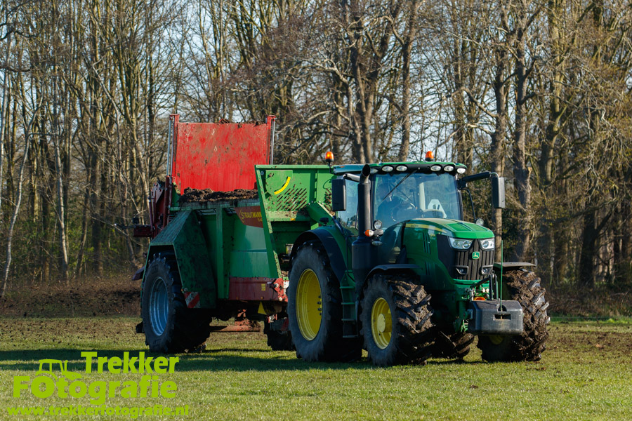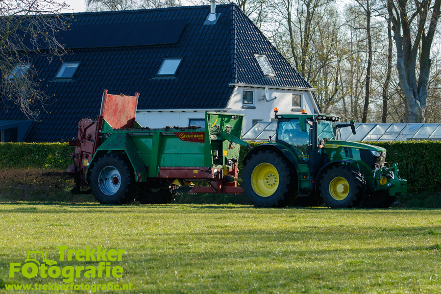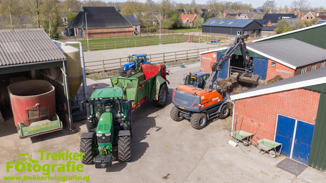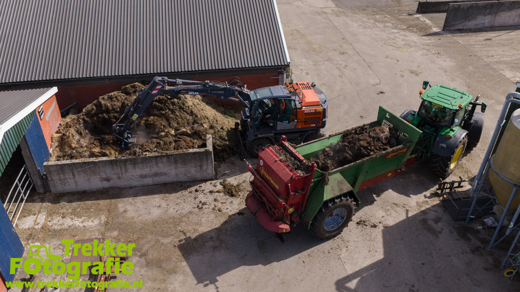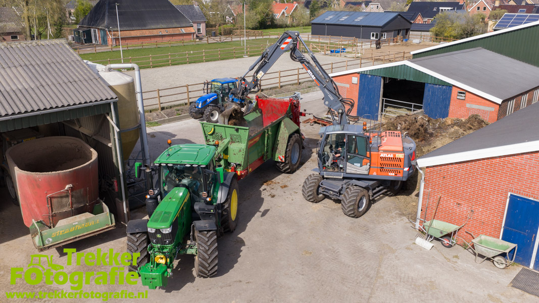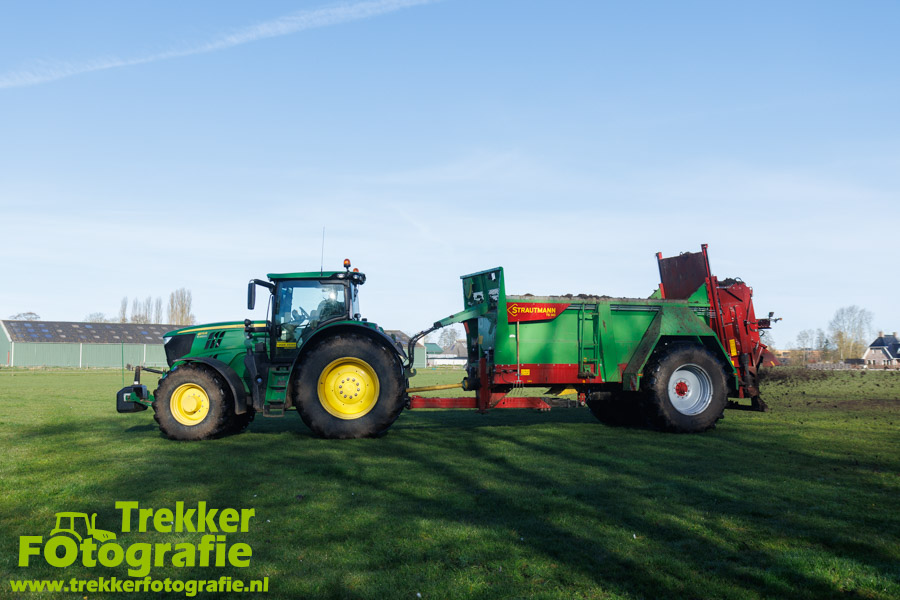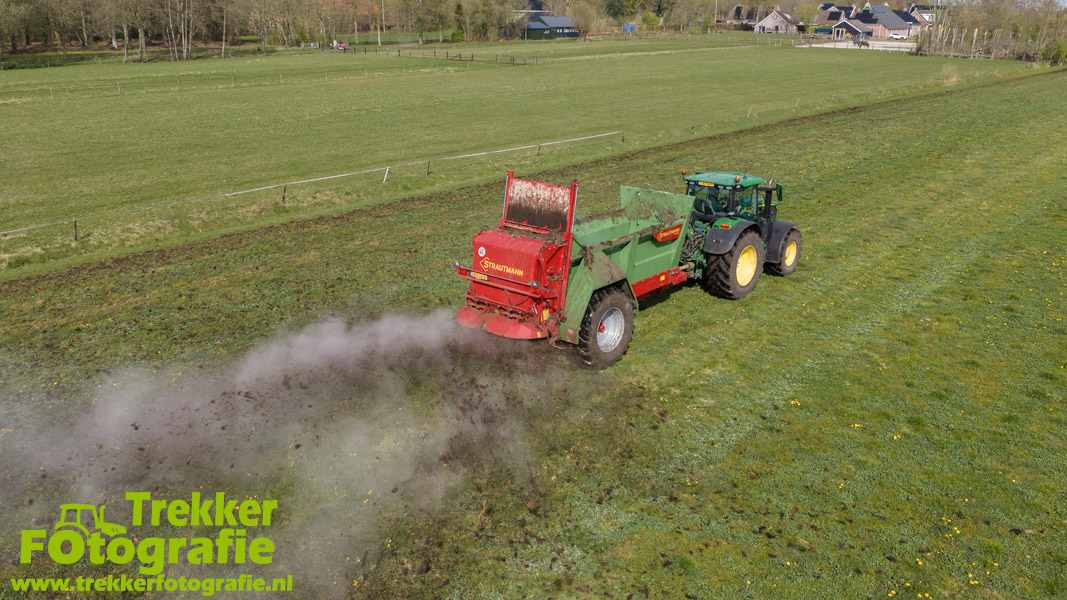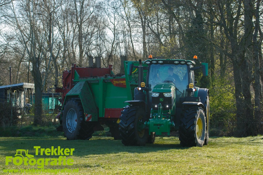 Sinds dit jaar word het vaste mest strooien bij loonbedrijf Lucas Stuut gedaan met hun twee nieuwe Strautmann TS 140 meststrooiers. Tijdens ons bezoek werd de vaste mest gestrooid op toekomstig bouwland en stonden hun John Deere 6R 215 en John Deere 6175R voor de nieuwe strooiers. Het volladen van de strooiers werd gedaan met hun Atlas 150W Blue mobiele kraan.