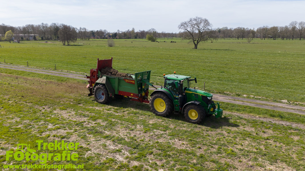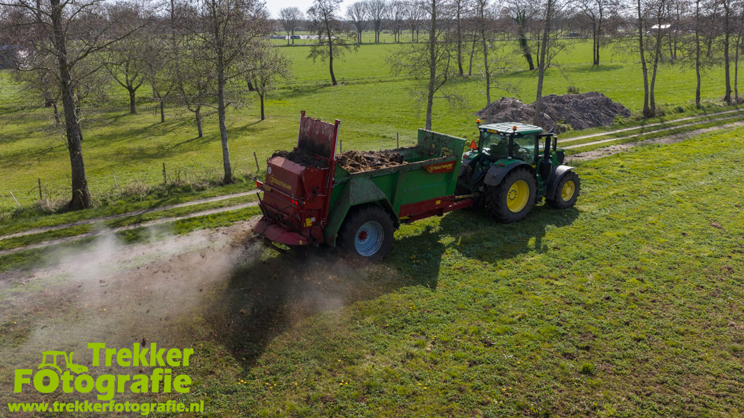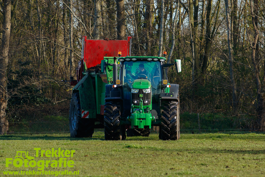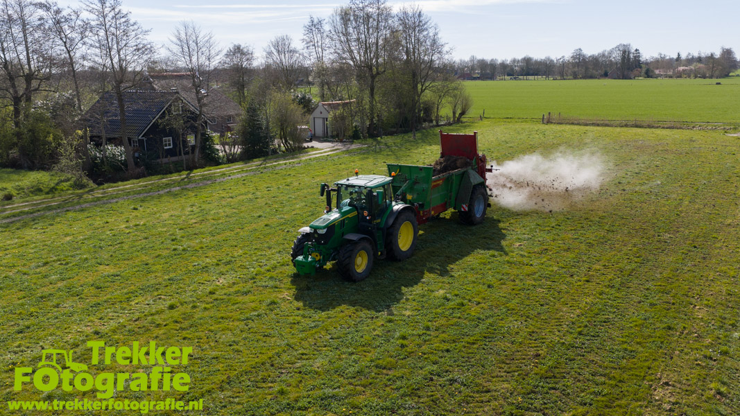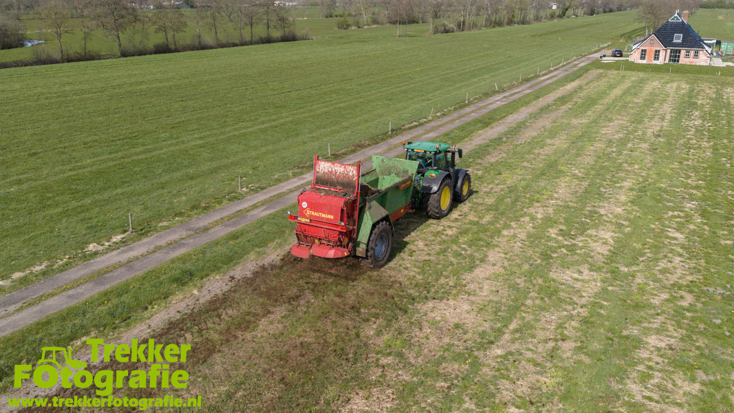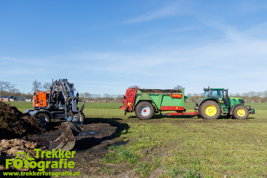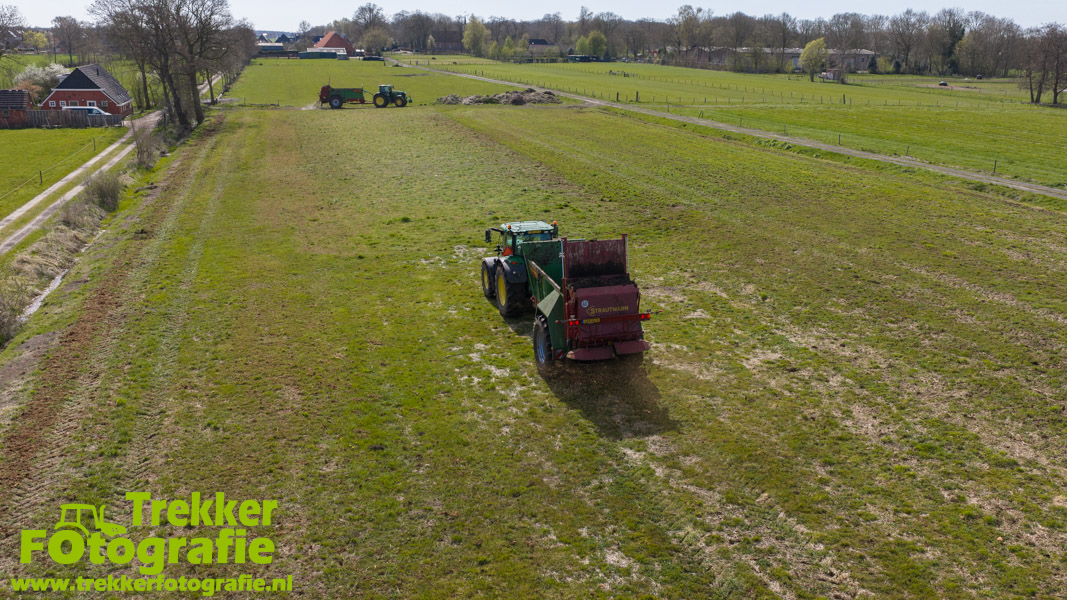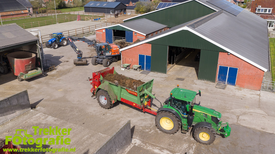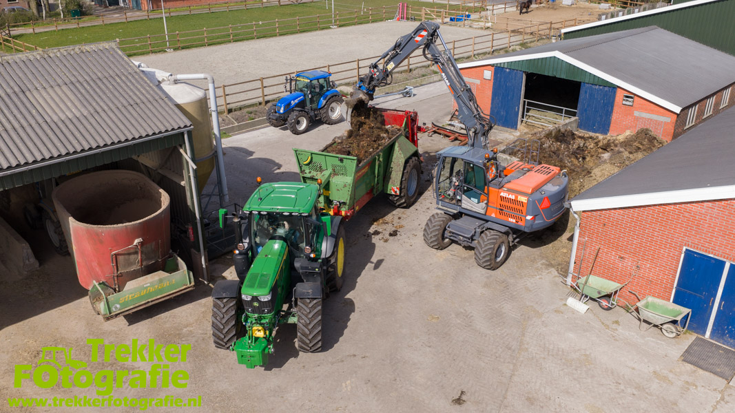 Sinds dit jaar word het vaste mest strooien bij loonbedrijf Lucas Stuut gedaan met hun twee nieuwe Strautmann TS 140 meststrooiers. Tijdens ons bezoek werd de vaste mest gestrooid op toekomstig bouwland en stonden hun John Deere 6R 215 en John Deere 6175R voor de nieuwe strooiers. Het volladen van de strooiers werd gedaan met hun Atlas 150W Blue mobiele kraan.