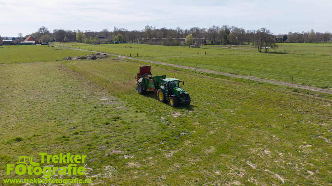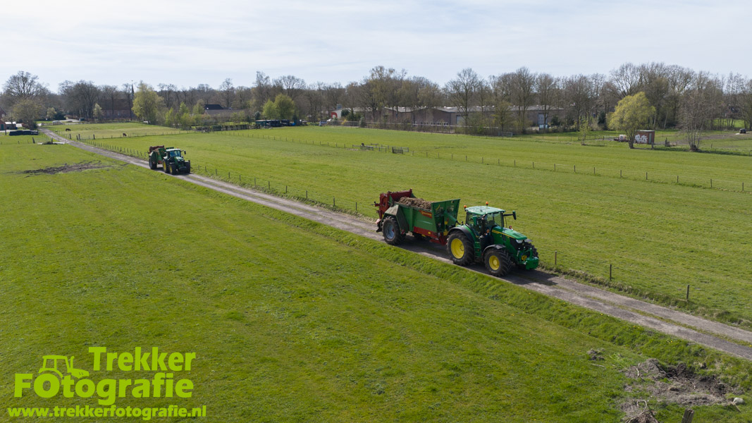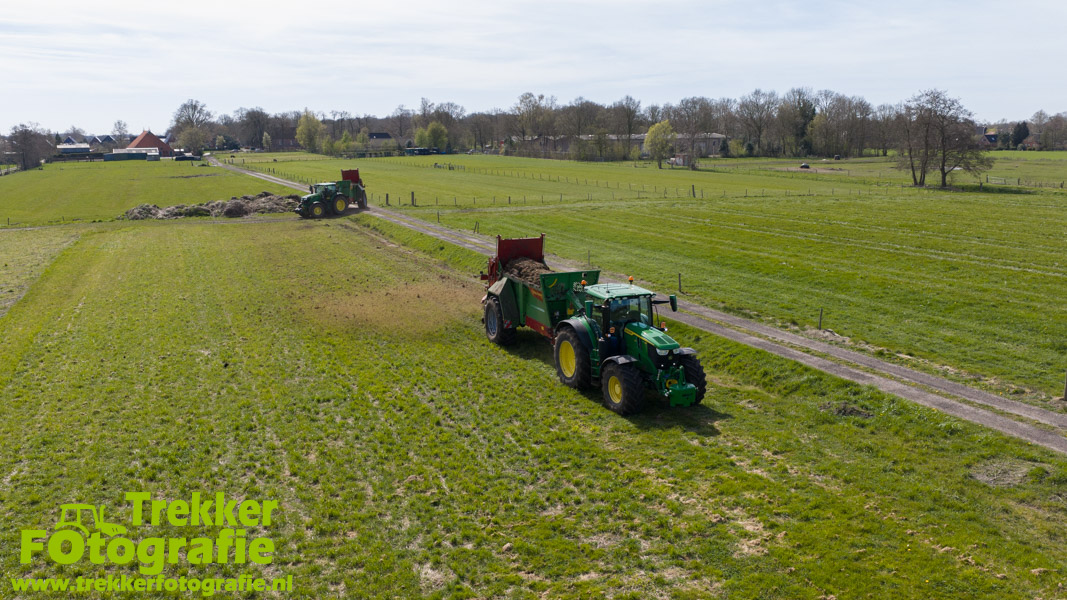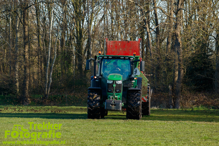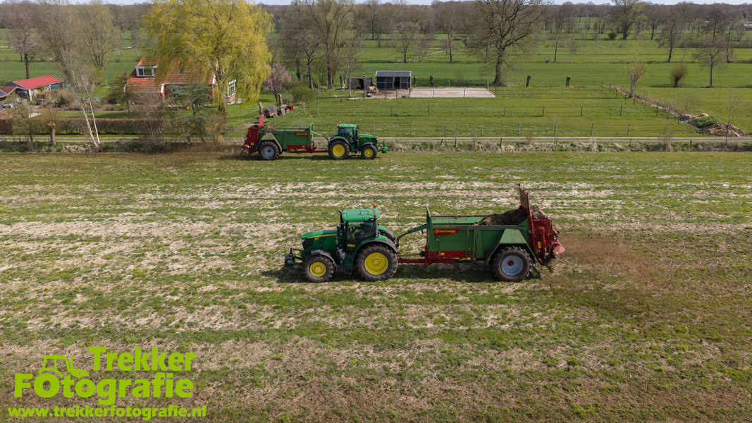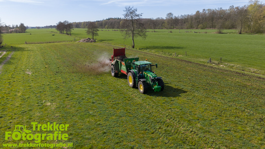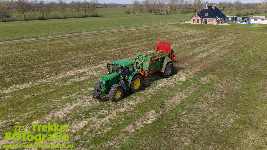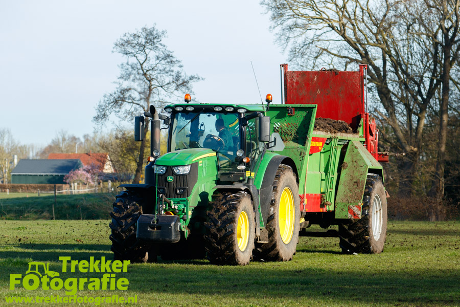 Sinds dit jaar word het vaste mest strooien bij loonbedrijf Lucas Stuut gedaan met hun twee nieuwe Strautmann TS 140 meststrooiers. Tijdens ons bezoek werd de vaste mest gestrooid op toekomstig bouwland en stonden hun John Deere 6R 215 en John Deere 6175R voor de nieuwe strooiers. Het volladen van de strooiers werd gedaan met hun Atlas 150W Blue mobiele kraan.
